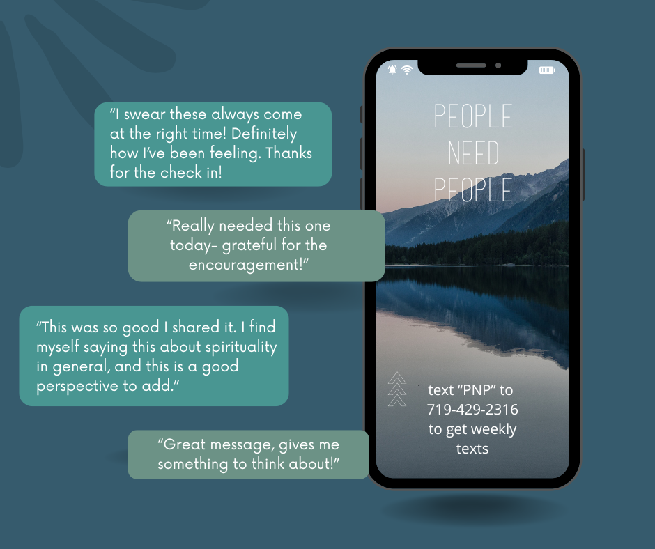 Get 1-3 texts a week. These often include questions to reflect on, encouragement for the week, or announcements for PNP. You’re invited to respond & start a conversation, or simply read & reflect. Text “PNP” here →